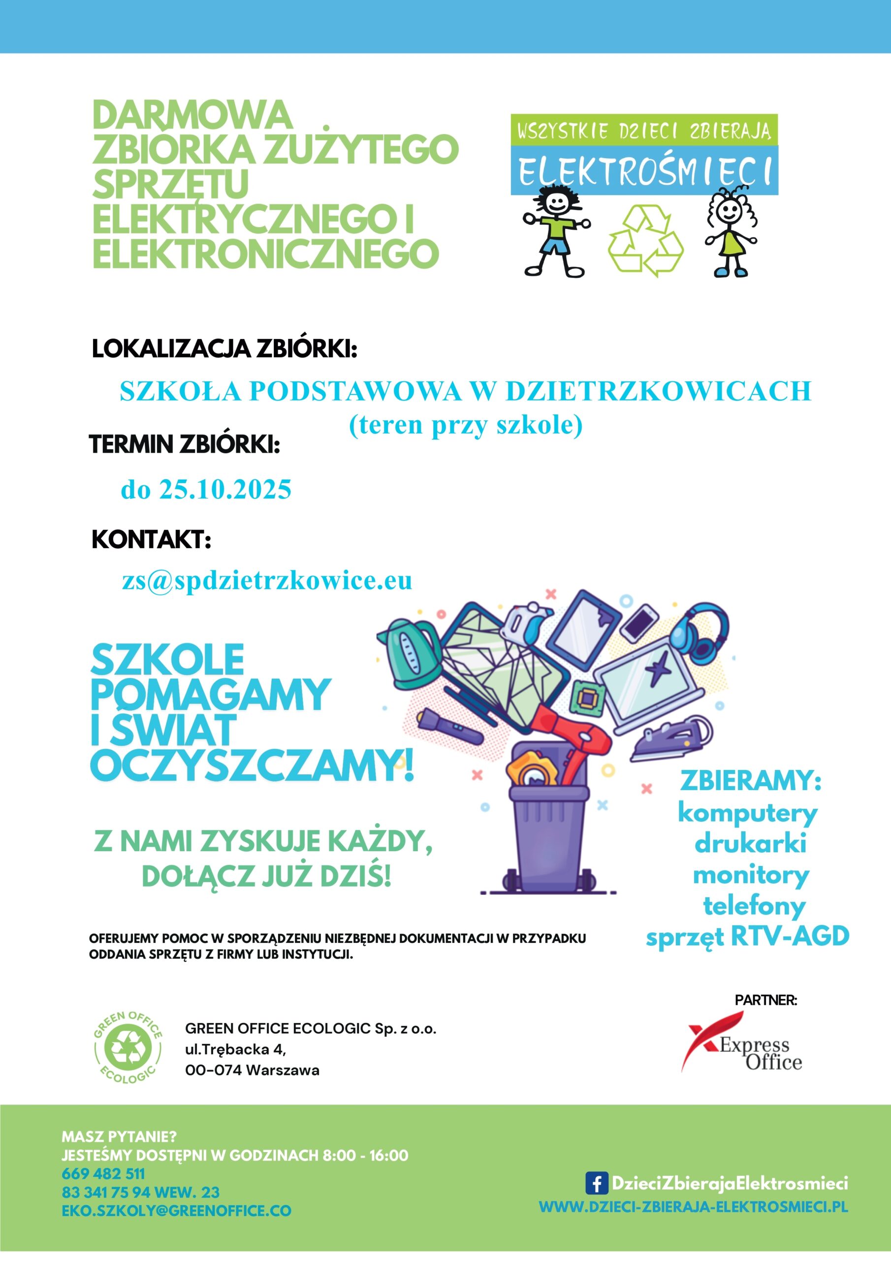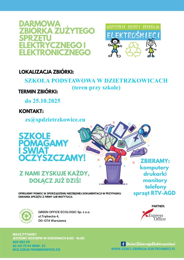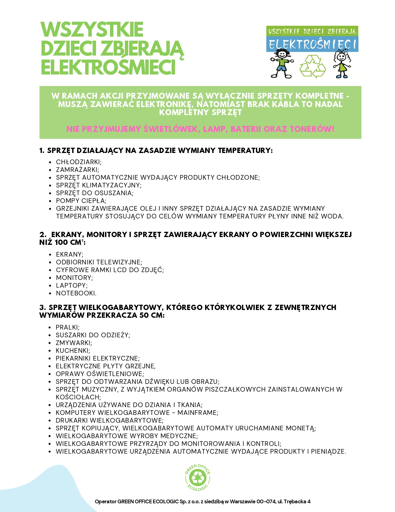 Nasza szkoła przystąpiła do projektu ekologicznego „WSZYSTKIE DZIECI ZBIERAJĄ ELEKTROŚMIECI”.